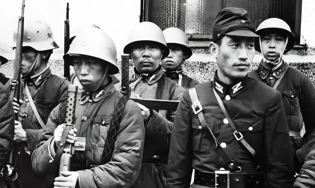 这个黑制服叫礼式呢服,硬挺,胸袋用双线压明道,黄铜扣子一枚枚抛得锃亮,旁边绿棉服的伙计戴圆顶帽,耳带垂着,枪托上的木纹被手心油汗浸得发黑,爷爷指过这类领章,说一看就知道谁归哪一路,阵前才会摘,图里可都还在,说明还想着站住脚,换作现在,徽标全塞进口袋里,低调点儿更保命。
