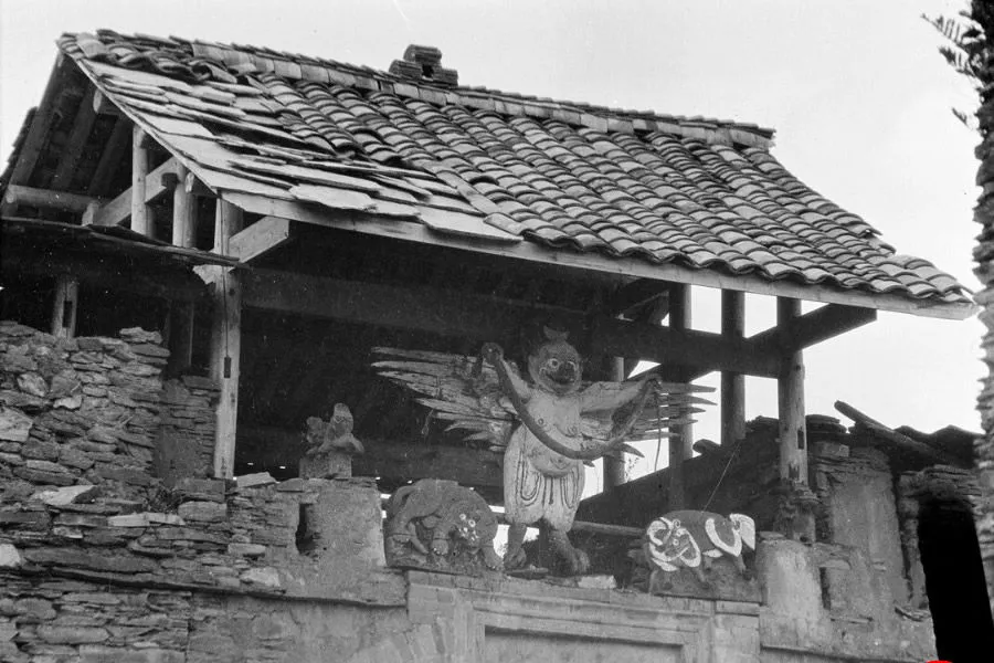 这个有翅膀的泥塑叫琼鸟,立在官寨的檐下,瓦片叠得乱,木梁露着筋骨,鸟身涂着旧彩,手里还像拎着一条绸带,老人说这是保佑平安的神鸟,打雷时要往它那边看上一眼,心里才踏实,以前靠它“镇宅”,现在我们靠消防喷淋和保险单。