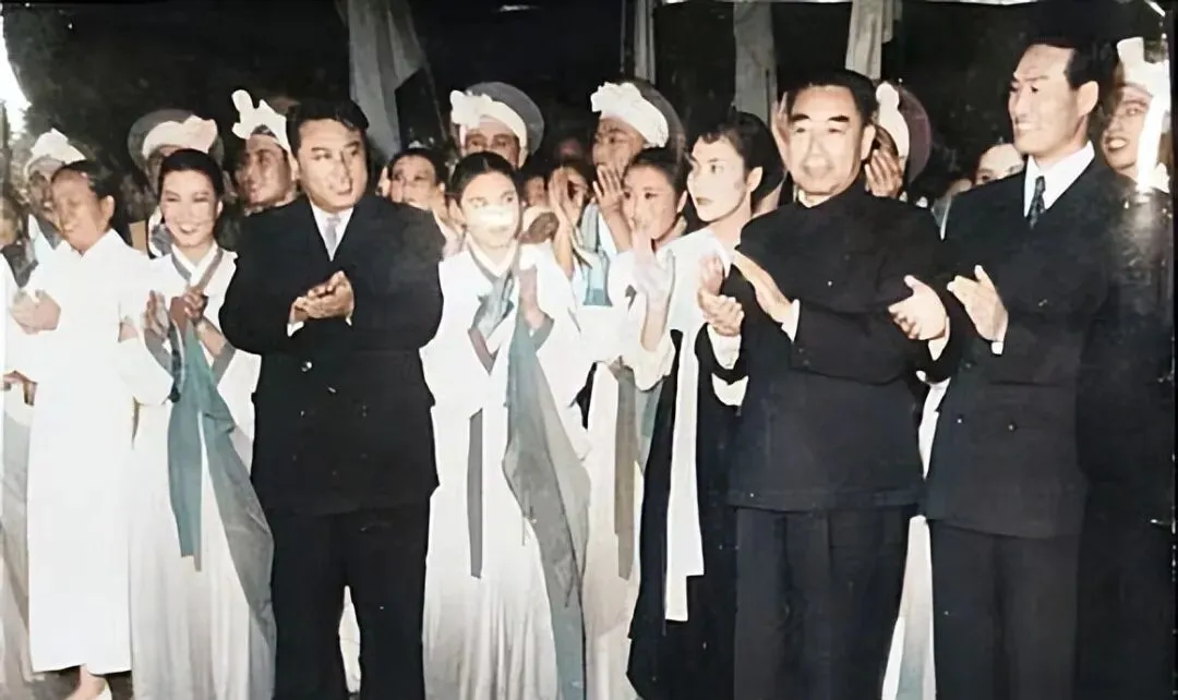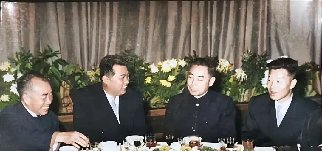 这个席面叫国宾宴,圆桌转盘上摆满冷拼热炒,玻璃杯里映着吊兰的影子,几位主宾身着深色中山装,低声换语,神情专注,妈妈看着这张说,唉你看那眼神,既有礼数又有分寸,和现在视频会议隔着屏幕打招呼不一样,桌面上人情味就在那里转,筷子碰盘子,杯口轻轻一合,都是分寸。