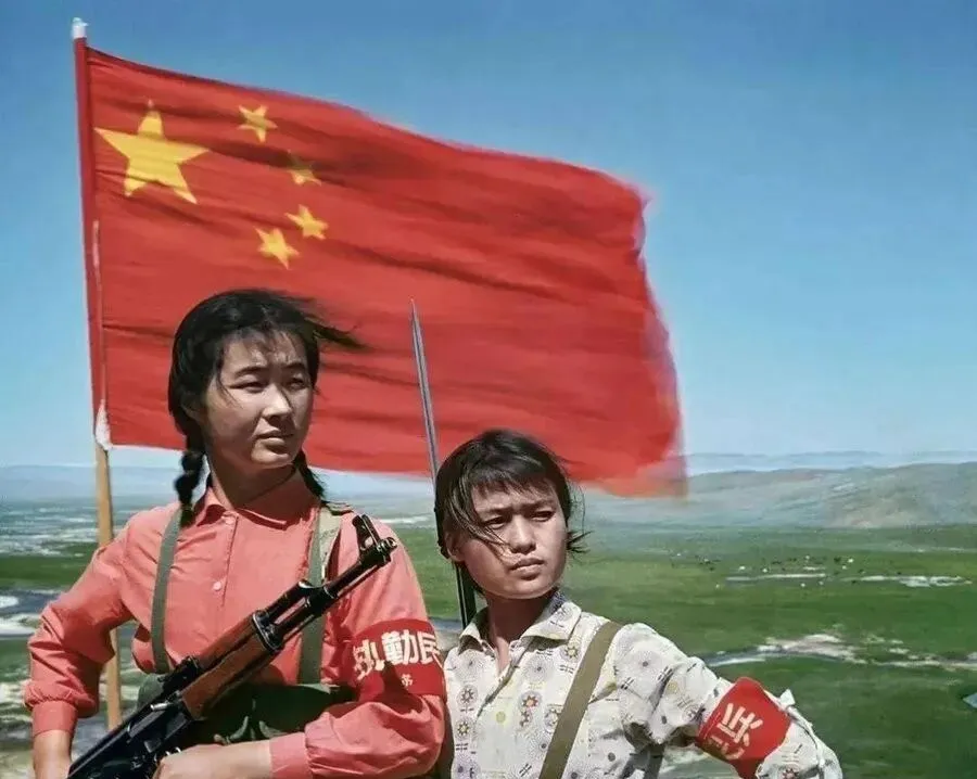 这张叫青春的硬朗,红旗猎猎,袖章一左一右,风把辫尖吹直了,肩上的带子勒出一道痕,眼神看得远,像要把地平线扯近一点,表妹看完直说酷,现在自拍有滤镜,那时候的脸,只有太阳当滤镜。