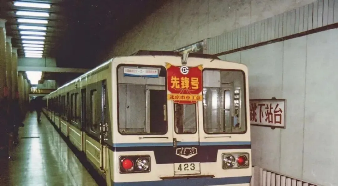 这个蓝白相间的叫老地铁车厢,方头方脑,门边有个红色“先鋒号”的锦旗,车灯像两只大眼睛,进站得先下后上,站台的牌子写着跳下站台四个字,爸爸说那会儿线路不多,票价却稳当,车厢里吱呀一响就到站了,现在换成冷白灯和电子报站,老味儿淡了。