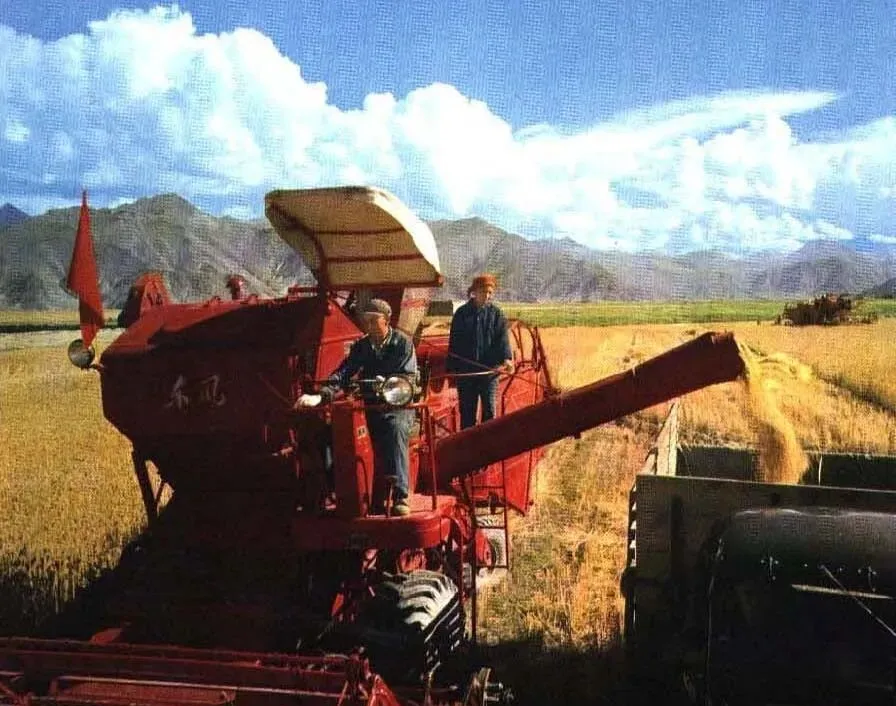 这个红家伙叫联合收割机,长长的卸粮管一吐,黄灿灿的麦粒哗啦啦进车斗,司机眯着眼盯着地头,机器轰得人心直发颤,那时候听见这声,心里就知道又是个丰收年了。