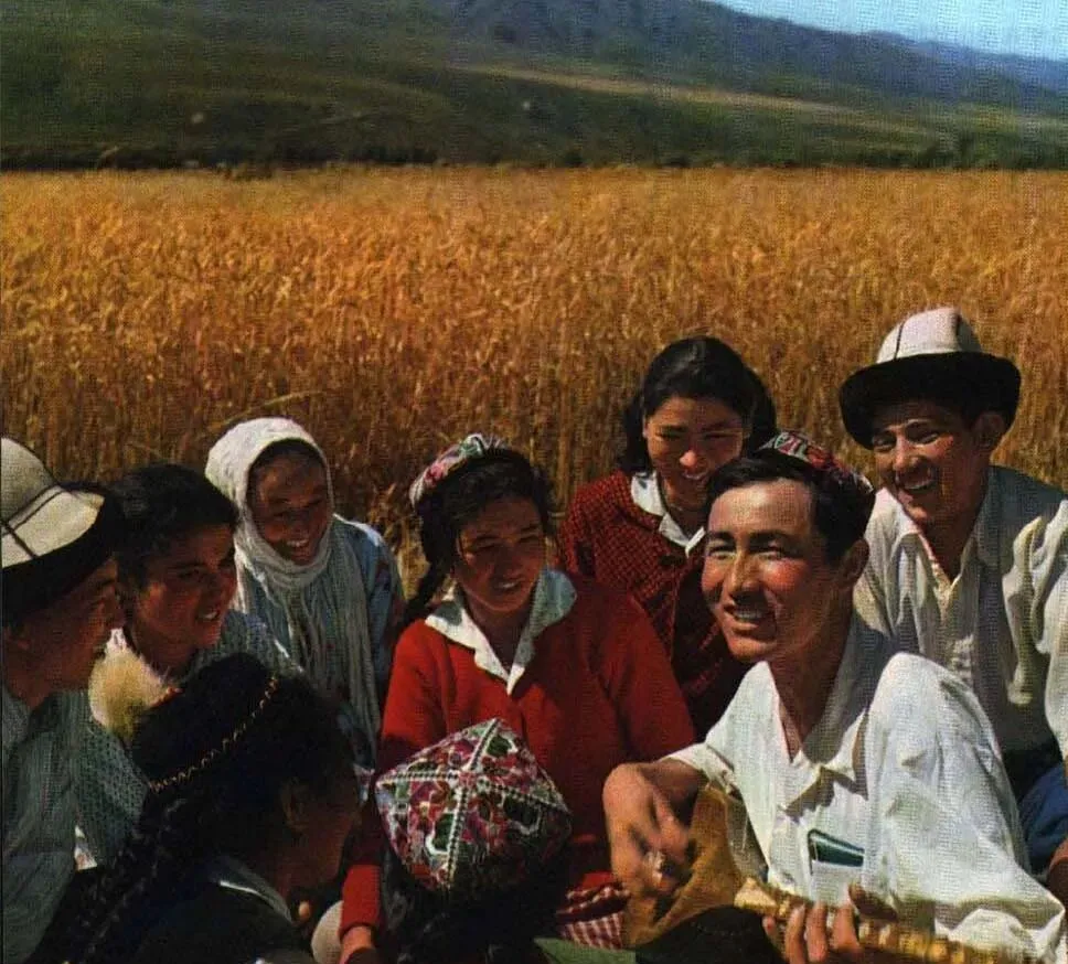 这个拨着的乐器叫冬不拉,木柄细长,声儿清脆,围成一圈的人跟着哼,笑纹顺着太阳纹路在脸上开,忙完地里的活,歌就自己出来了。