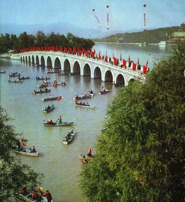 这个地儿不用多说,桥面插满小红旗,湖里小船星星点点,国庆天儿好,气球在空里挂着条幅,岸边卖冰棍的吆喝声一路跟着你走。