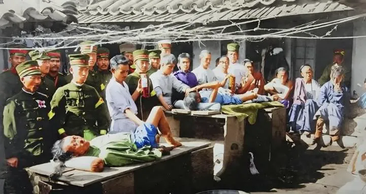 这个院子里的木案子叫手术台,可台面是灶台板拼的,兵帽压得低,白衣提着壶,台上是被捆着的伤者,屋檐下挂满乱七八糟的绳线,奶奶看见这张直摇头,说这哪是救命啊,更像摆拍的体面,外面喧嚣热闹,台上却只剩牙关打颤的冷。