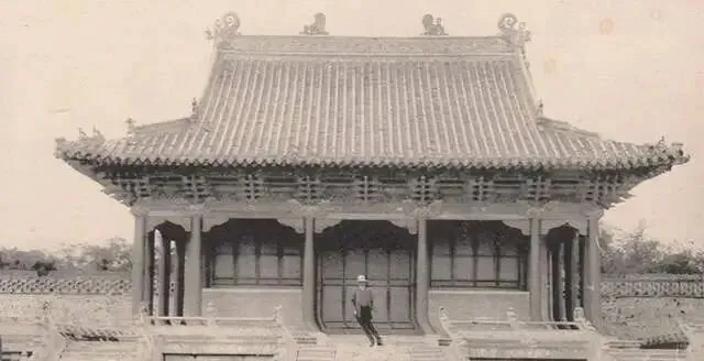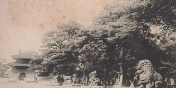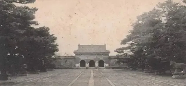 图中这条笔直的路叫神道,两侧砖石压着缝儿齐刷刷,脚下的石条被岁月磨得发亮,尽头那座三券洞的门殿,屋脊轻轻上挑,角上的脊兽排成一溜,像护卫队不声不响地站班,老照片里看不见游客,只有风从古松里穿过去的影子,奶奶看了说,以前走这条道得收住脚步小点声,别惊着了碑前的神灵,现在可好了,大家边走边拍,鞋印子一串串。