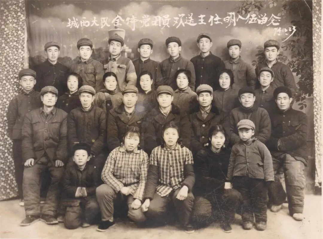1974年12月23日,桓城人民公社城西大队欢送新兵王仕明(第二排中)入伍大会后,全村党团员与其合影留念。王仕明在部队多次立功提干,历任连长、营、团政委、新疆和静县人武部政委等职,上校军衔。退休享受师级待遇。(照片提供者:陈立言)