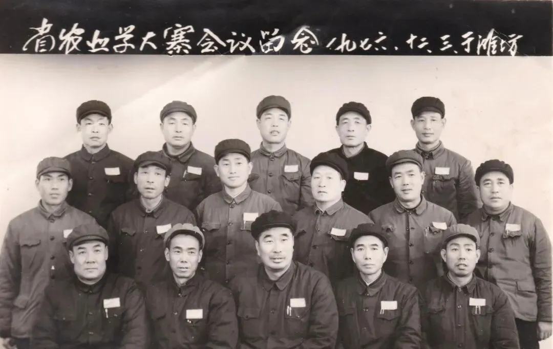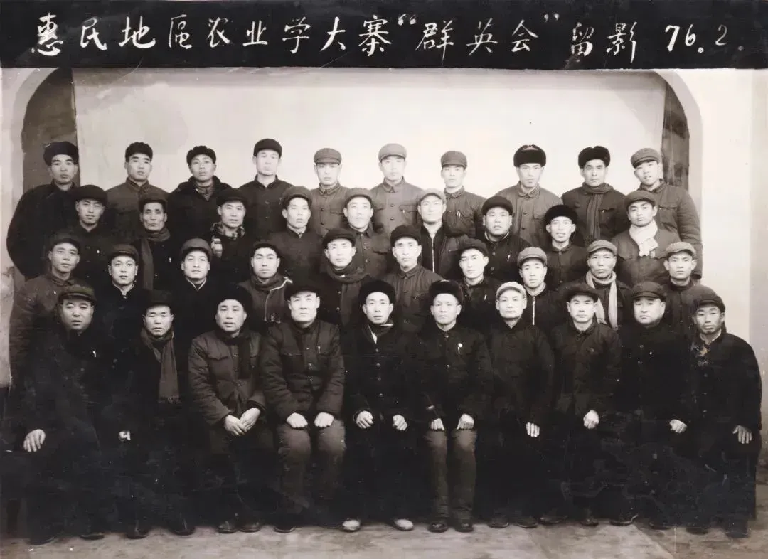 1976年2月,惠民地区农业学大寨“群英会”合影留念。四排右三为照片提供者的父亲殷佃宝,时任田庄公社大庞大队党支部书记。(照片提供者:殷茂凯)