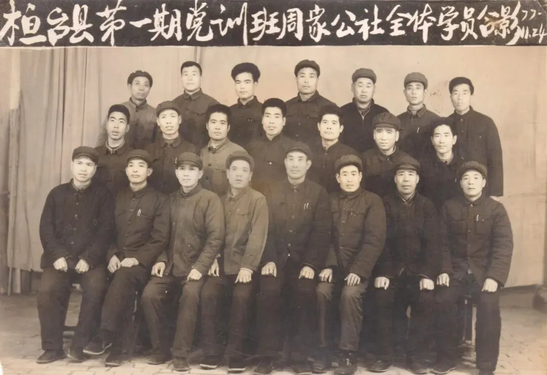 1977年11月,桓台县在县委党校举办第一期农村党支部书记培训班。周家人民公社参加培训的学员合影留念。(照片提供者:傅光英 伊善荣)