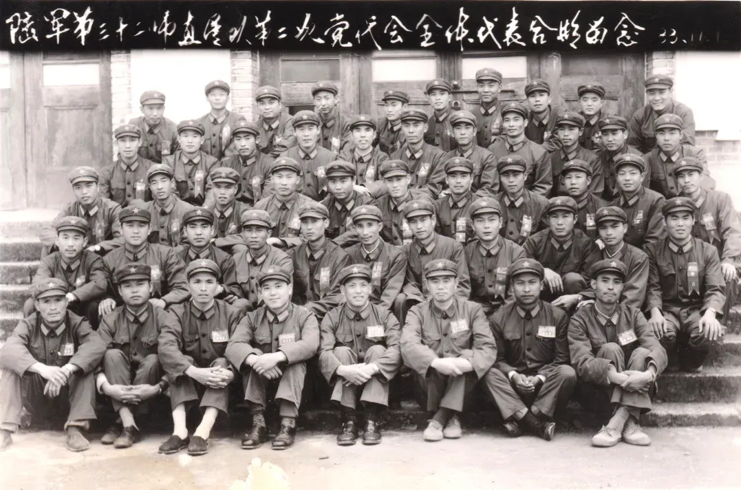 1983年11月,中国人民解放军陆军第三十二师直属队第二次党代会全体代表合影。桓台籍刘思湖(二排右七第五)作为代表之一参加合影,其时任高炮营一连政治指导员。(照片提供者:刘思湖)