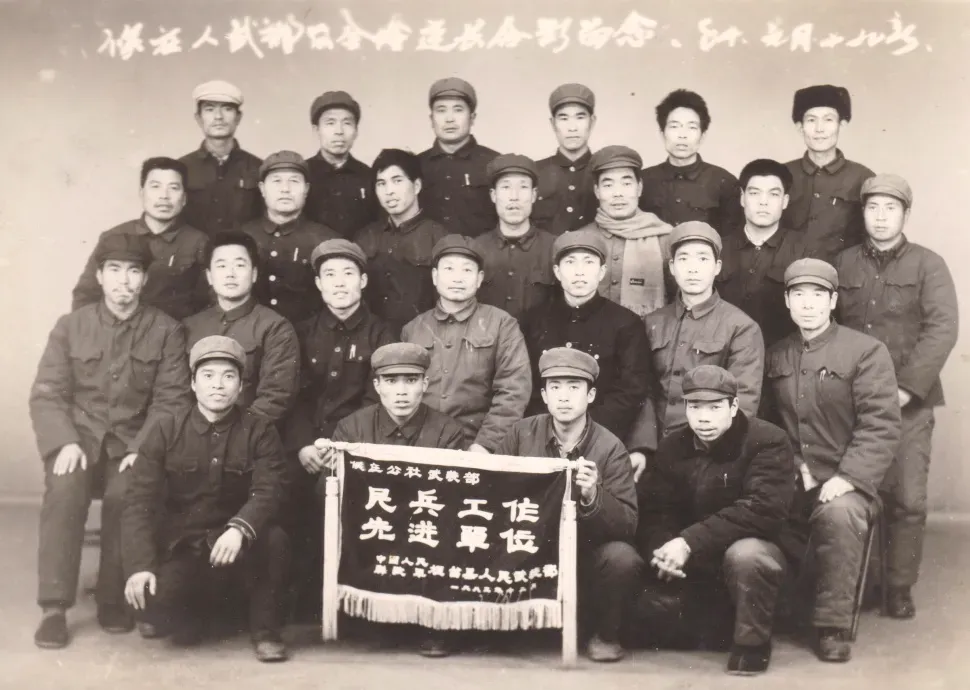 1983,侯庄人民公社人武部被县人武部表彰为“民兵工作先进单位”。1984年1月19日表彰大会后,公社人武部负责人与各大队民兵连长合影留念。(照片提供者:李克玖,前排右一)