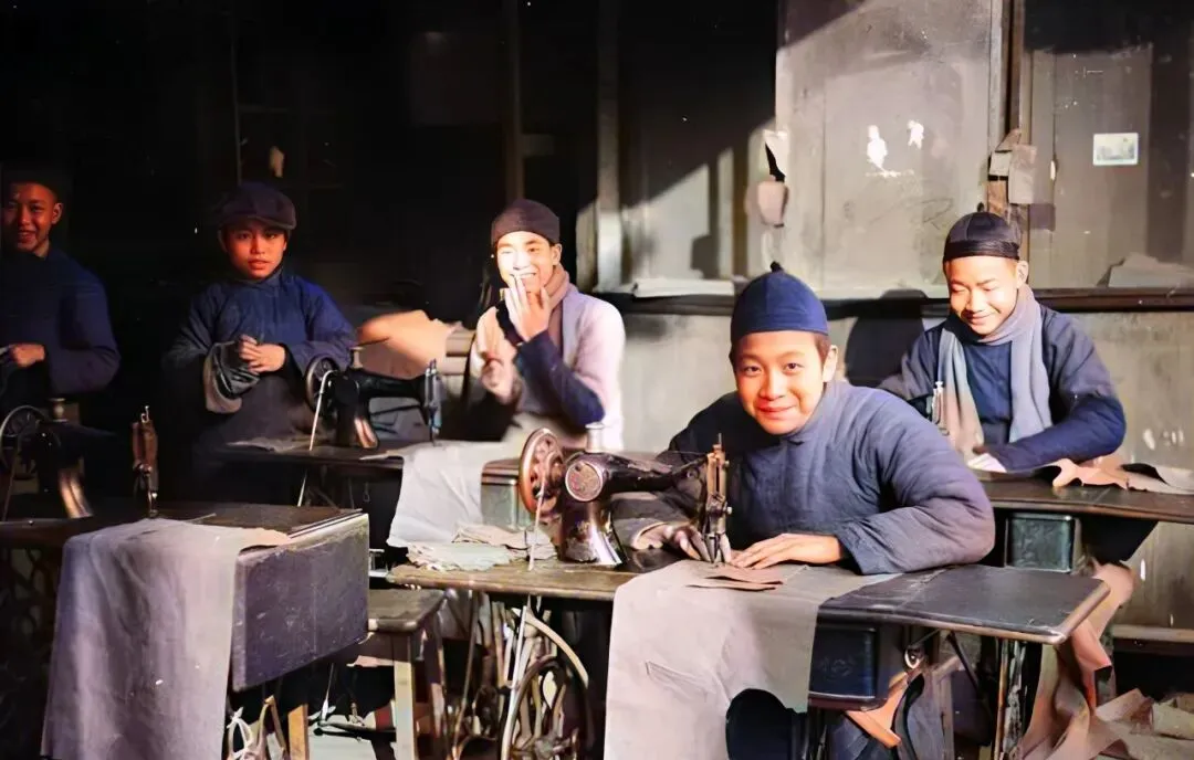 这个黑亮的家伙叫老式缝纫机,飞人牌的多见,脚一踏板,轮一带,针脚就“哒哒”地跑,师傅手背上全是针眼,我娘当年结婚的新褂子就是这样一针一线赶出来的。