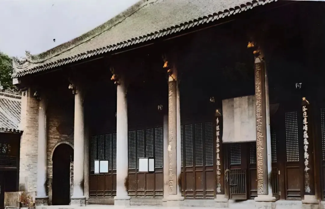 图中高柱阴沉沉站着,殿门嵌着密密格眼,金字楹联往上一抬头就能看见,香火旺不旺,一到初一十五就知道了,现在人忙,心里要清净,来这儿坐一会儿就顺。