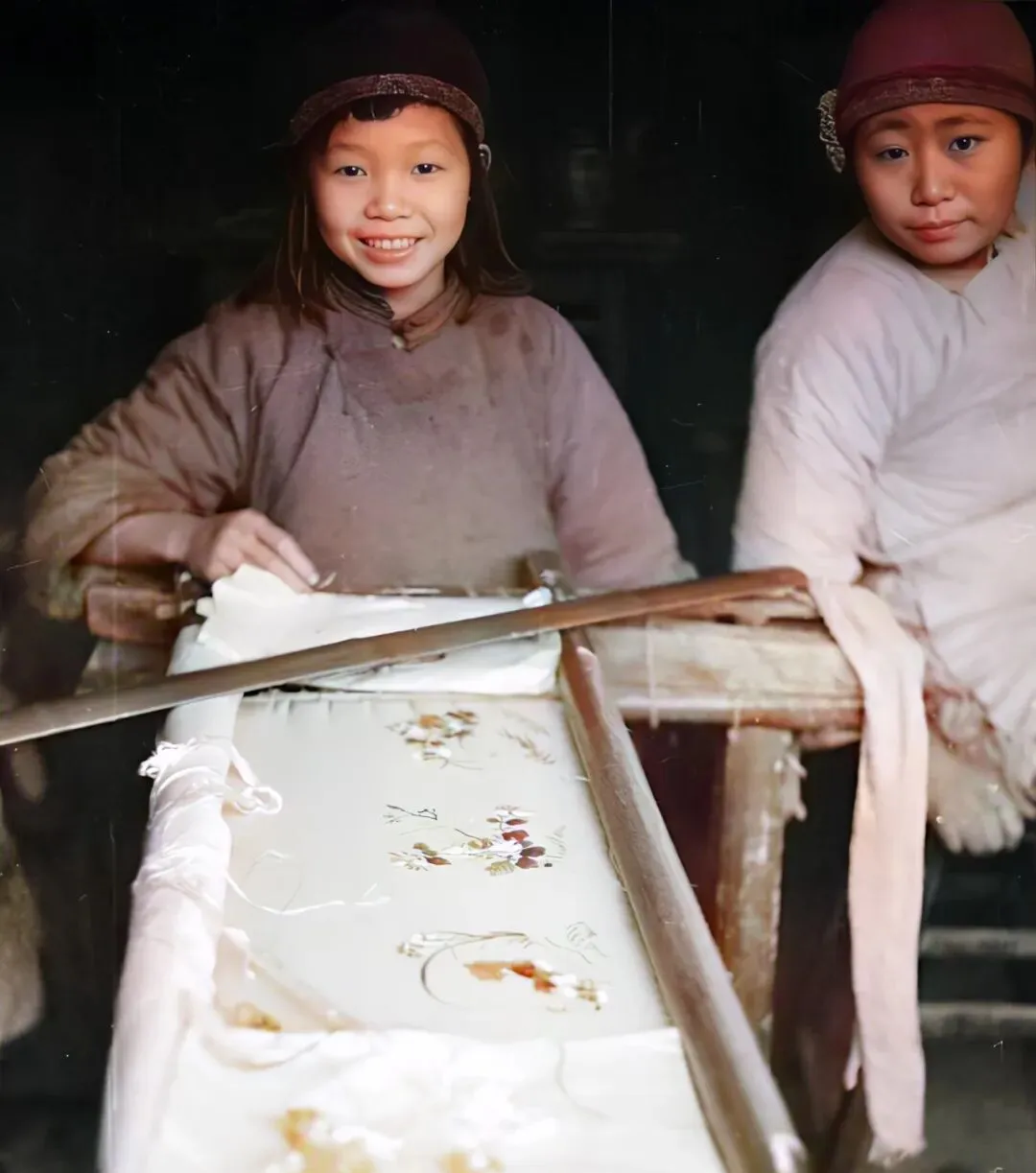 这个长条木框叫绣架,丝线分明,绣面亮得像湖水,姑娘笑着把针往回一送,花瓣就立起来了,手指头扎了也不吭声,等她抖一抖袖子,满屋的细光跟着动。