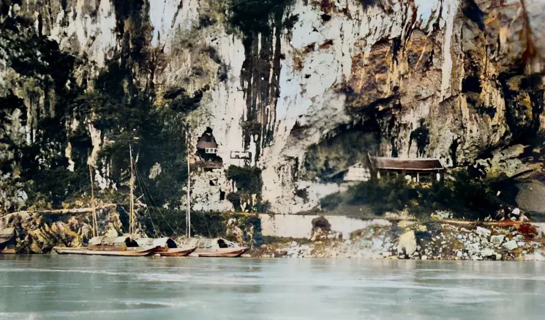 这个崖缝里的洞,老辈子叫“蛮子洞”,其实多半是古墓,江水宽宽地躺着,几只船靠着岸边,石壁上小房子像贴画一样,走船的人都知道这段水要当心。
