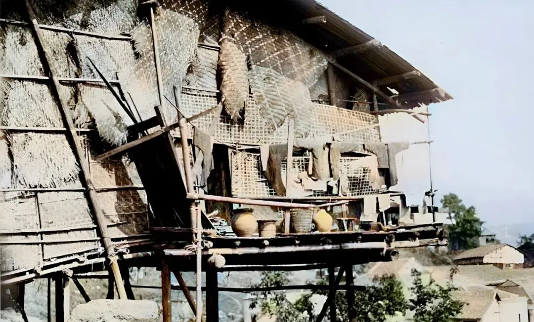 这个竹木架起来的叫吊脚楼客栈,墙上糊着席片挡风,台面摆着黄陶罐和竹篓,过路人歇脚就上一碗热茶,夜里听河风夹着犬吠,翻个身就又睡熟了。