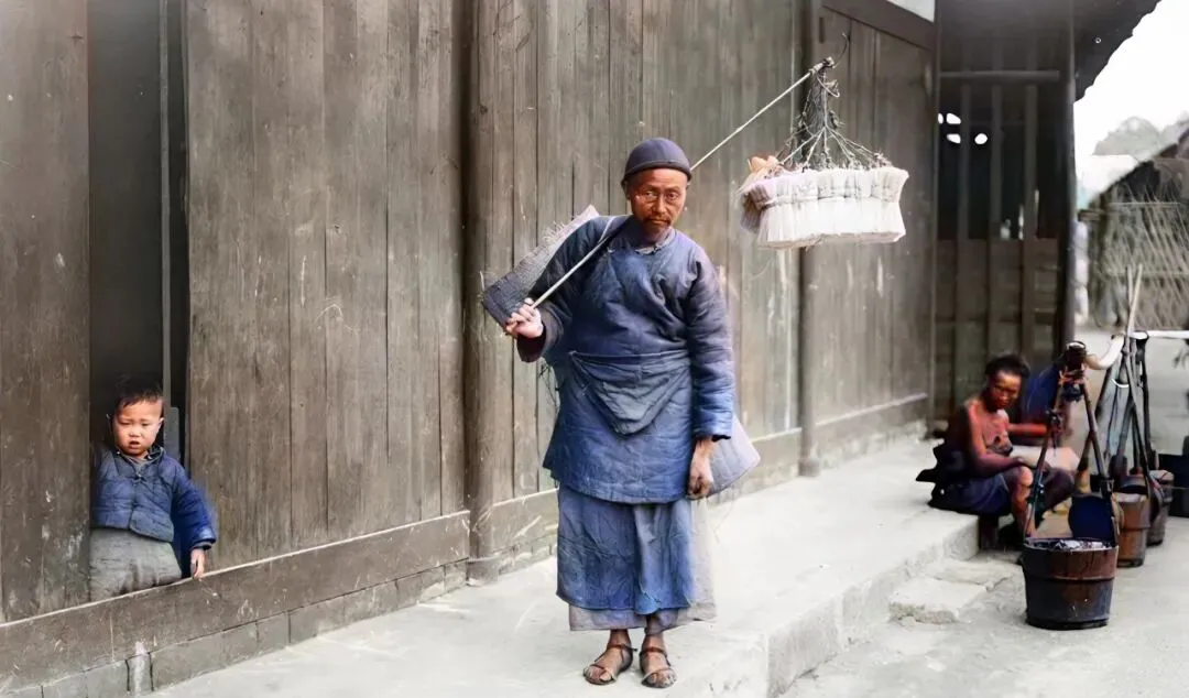 这个挑子上挂的多是小刷子小器件,小贩肩窝被扁担磨出老茧,他背后斜挎一张苇席,白天叫卖,晚上就蜷在席子上挨一宿,他自己说,晴天好过雨天,雨天家伙事儿都得护着。
