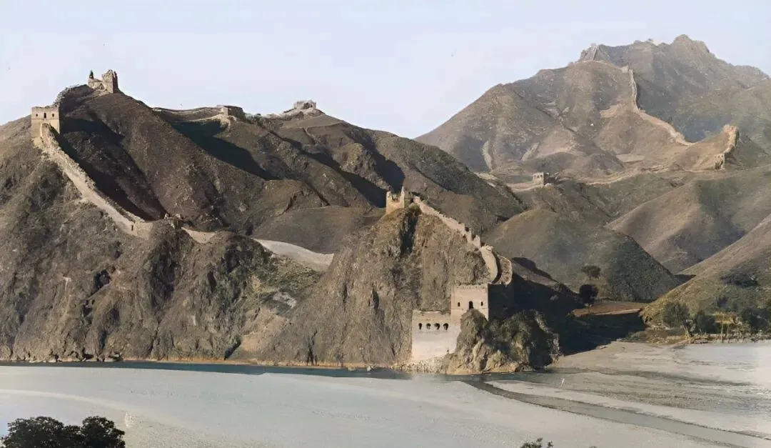 这一眼望过去,长城像龙脊在群山间忽高忽低,墙线时而攀上陡坡时而顺着缓梁滑下去,河水在脚边弯出一钩,放在今天,站这里随手一拍就是大片,以前可真没摄影这回事。