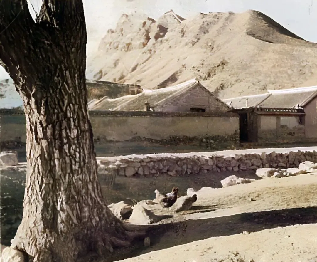 这张里有一棵粗壮的槐树,沟边的石块垒得整齐,几只鸡在阳光地里刨土,院墙低低的,屋脊压着草泥,安静得很,以前的生活节奏就这么慢,现在大家都恨不得把一天掰成两半用。