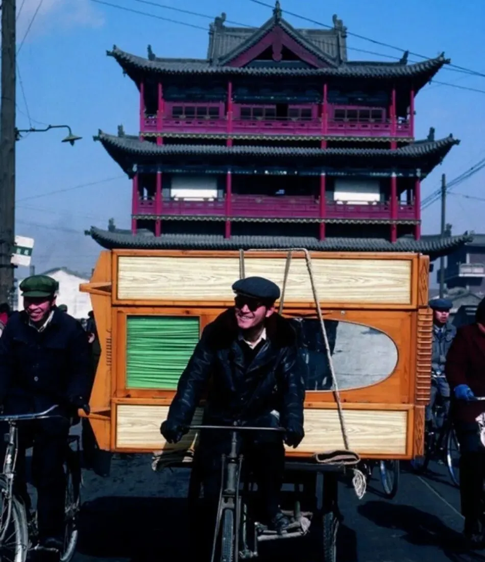 这辆哐当作响的是人力三轮,车上绑着三开门大衣柜,司机戴毡帽乐呵呵,拐弯得喊一句“让一让”,那时候买家具讲究木香味,现在送货上门是电梯加快递。