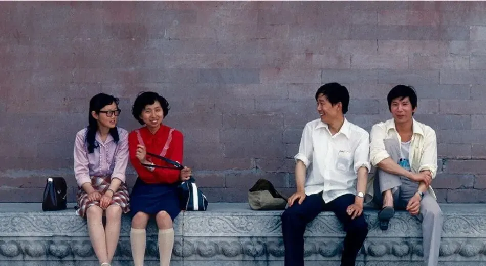 这对儿挨着坐的就是自由恋爱,长椅漆皮掉了也不妨碍甜蜜,男生军绿裤配白衬衣,女生裙摆一扬笑得没影,那时候没有朋友圈,只有悄悄把头靠在肩上这一刻。