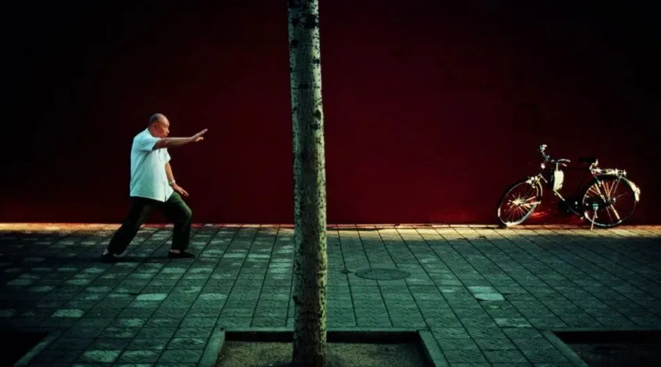 墙根的影子长长的,老爷子一招一式沉稳,旁边的二八大杠靠着树,气功热那几年,大家都信早起一套拳,白天一身轻。