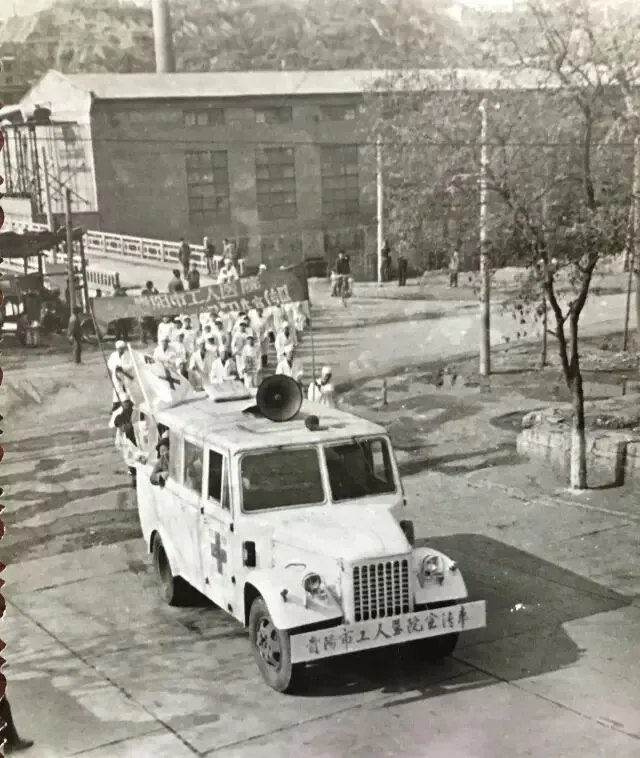 “贵阳市工人医院宣传车”宣传车背后的那座小桥看见了吗?它印证了似乎遥远而亲近的岁月……(图为义诊后回到医院大门前)1958年7月1日贵阳市工人医院建院