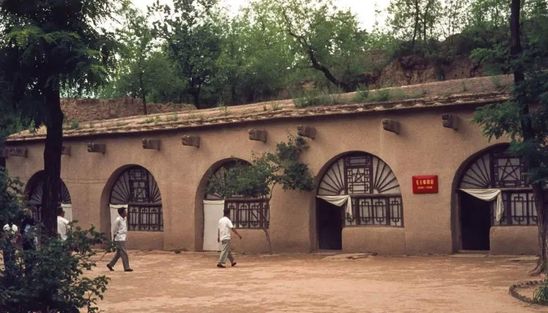 这个一排拱券窑洞,门楣上还挂着牌,窗框是细木条拼的扇面纹,院里树荫落下来一层凉,讲解员带着大家进去看老物件,脚步都轻了半分。