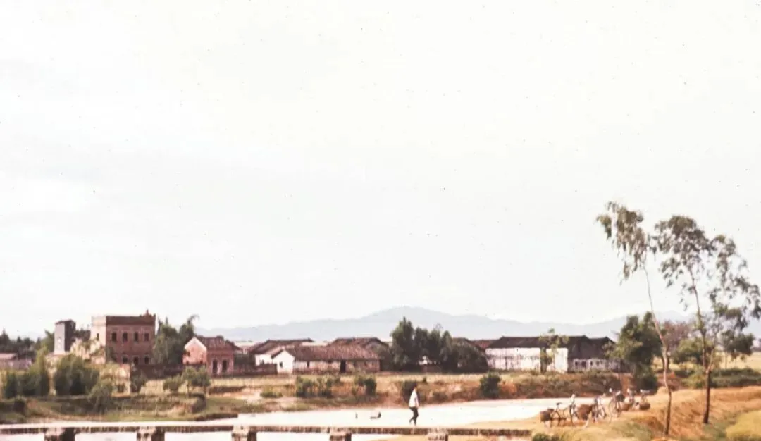 这条浅桥踩着石墩过水,村口烟囱细长长,牛车慢慢压过去,车辕吱一声,风把河面吹起小纹,安静得很。