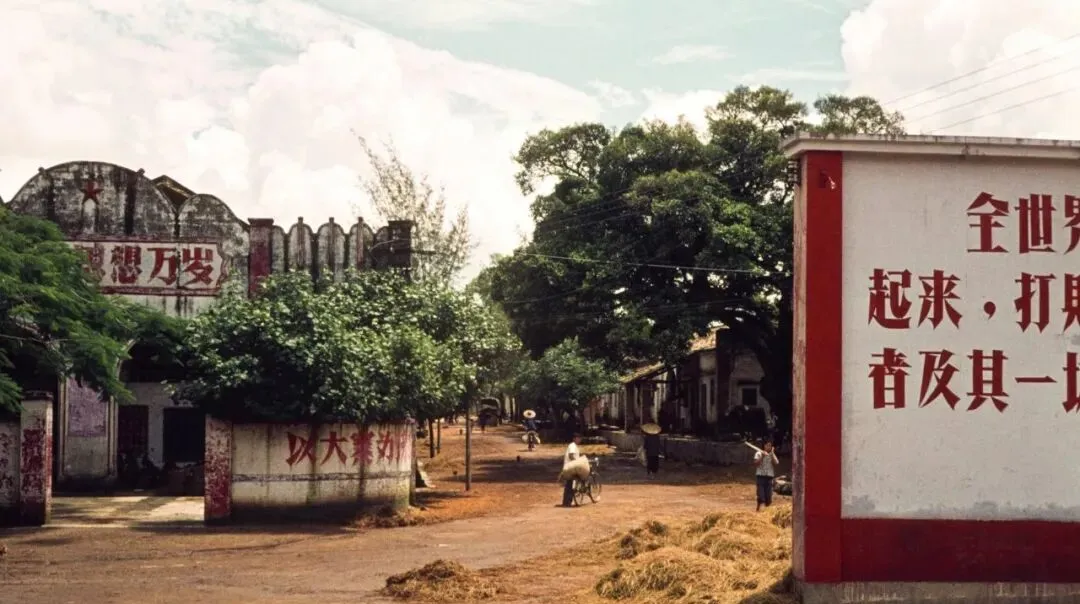 一面大白墙刷着红字,转个弯就是老街,孩子追着打闹,鸡从柴垛后面窜出来,生活气一下子全来了。