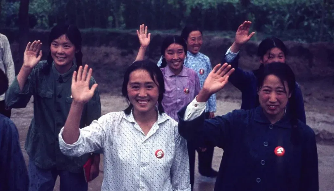 这一张最暖,姑娘们笑着挥手,胸前的徽章在微光里闪,车一启动,尘土一起,她们还在路口没走,送到看不见为止。