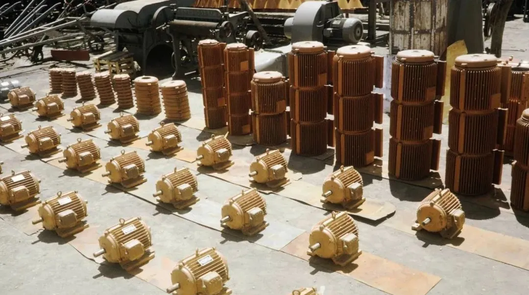 这一地的电机排成阵,肋片一条条像鱼鳞,颜色偏土黄,晒在太阳下暖洋洋的,师傅说这是刚浇好漆的得晾一晾,等装上去一拉闸,轰的一声,车间就活了。