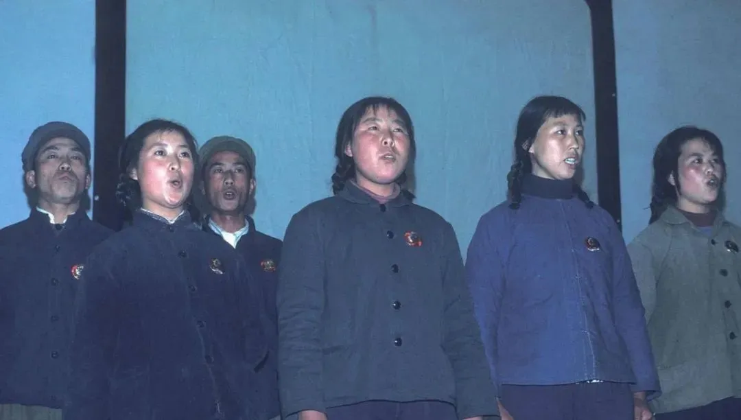 这一排年轻人正张嘴唱,胸口别着像章,灯影晃着脸颊红扑扑的,歌声一冲上去,屋里就暖和了,奶奶笑我小的时候总学人家“啊”一嗓子,结果吓得猫从炕头蹿下去。