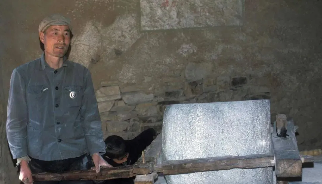 这个白生生的叫轧面机,石辊粗得吓人,汉子双手攥着横木往前推,后头有人添料,咯吱咯吱的声儿在屋里绕,面粉落进木槽,抖一抖筛子就雪似的飞起来。