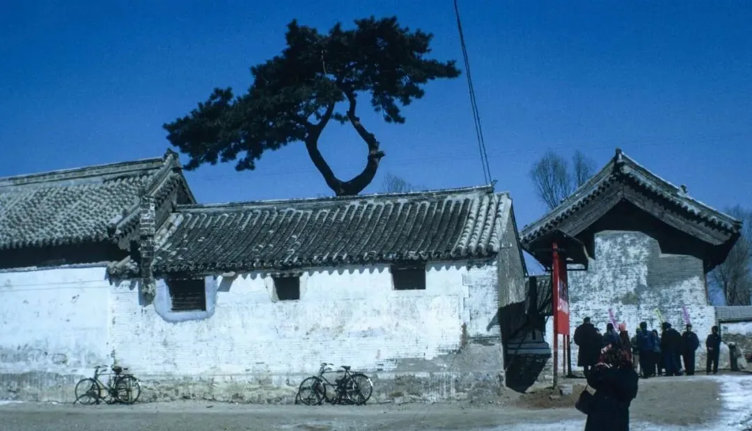 这面白墙顶着灰瓦,屋后探出一棵老松,风一来枝条就像要从墙上走下来,墙脚靠着几辆黑黢黢的自行车,院门口贴着布告,街坊凑过去看得认真。