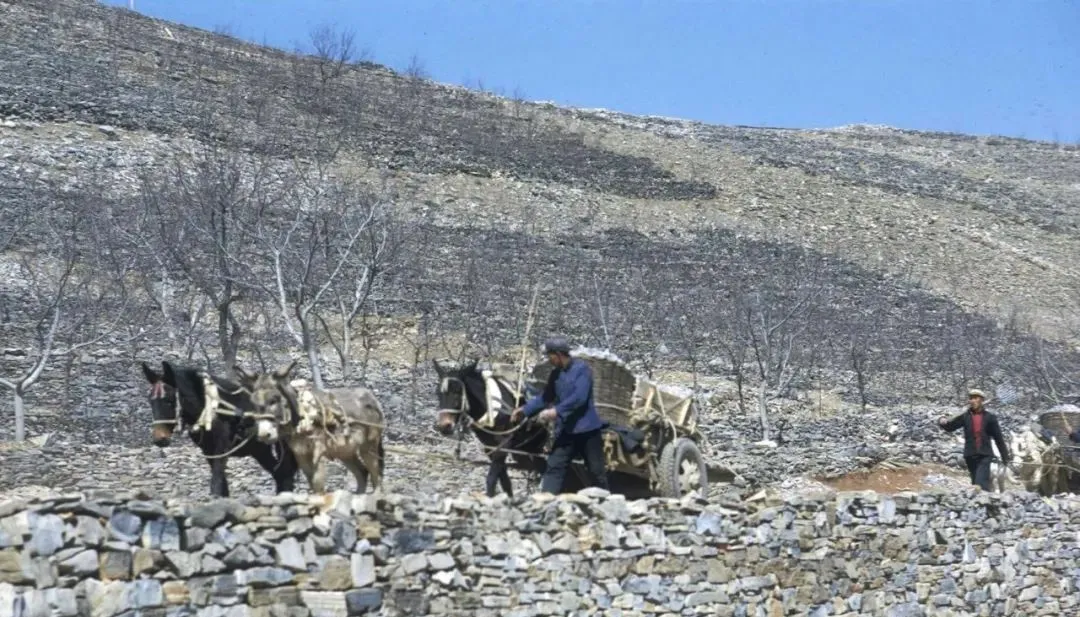 这一溜毛驴车正翻坎上坡,车帮子是柳条编的,石子装半车不敢满,路边是低矮的石墙,一脚一个坑,赶车人嘴里叼着草梗,说声“得儿驾”,驴耳朵一抖就迈大步。