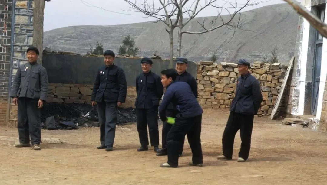 这几位忙里偷闲在院里打弹子,笑着喊“中啦”,地上黑炭渣还没清利索,人却先把笑声抖开了,队长从门里出来看一眼,摆摆手说“再来一局就干活”,众人嘿嘿散了。