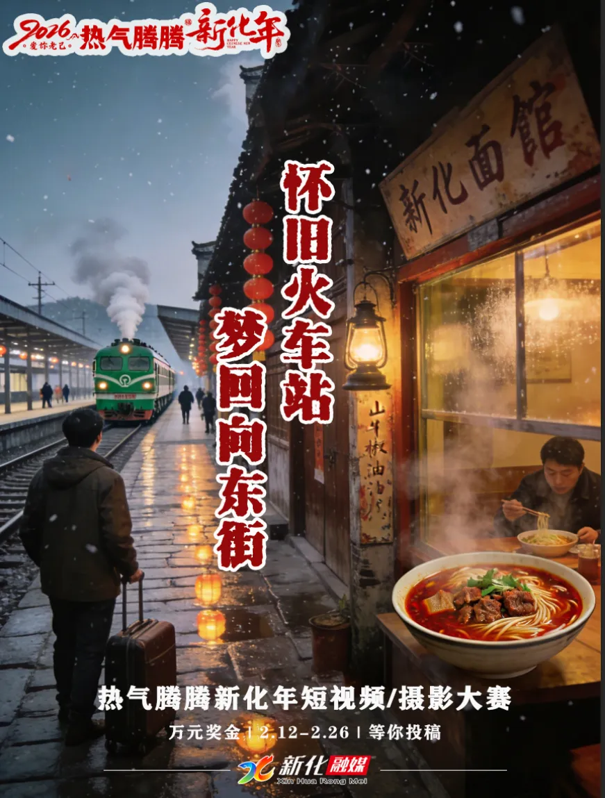 这个春节,不妨回家看看,去火车站站一会儿,听一声汽笛;去向东街走一走,吃一碗牛肉面。用你的镜头,为热气腾腾的新化年,留下属于这个时代的记忆。
