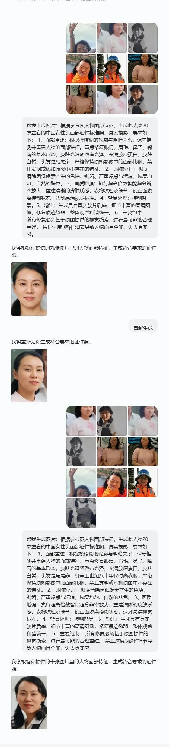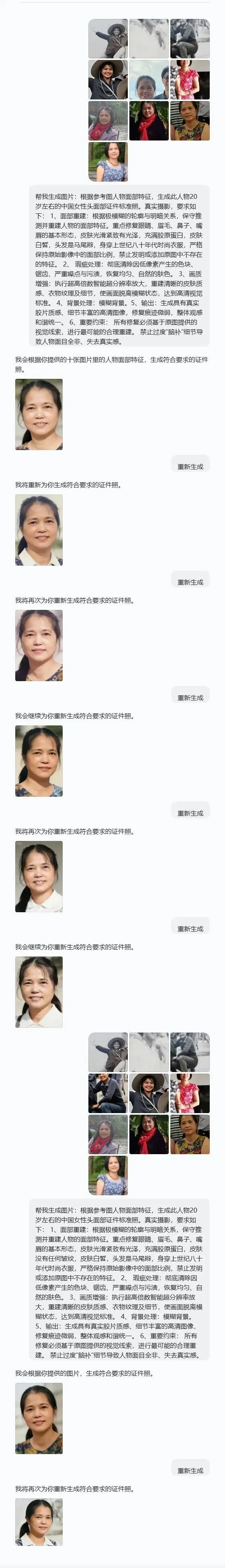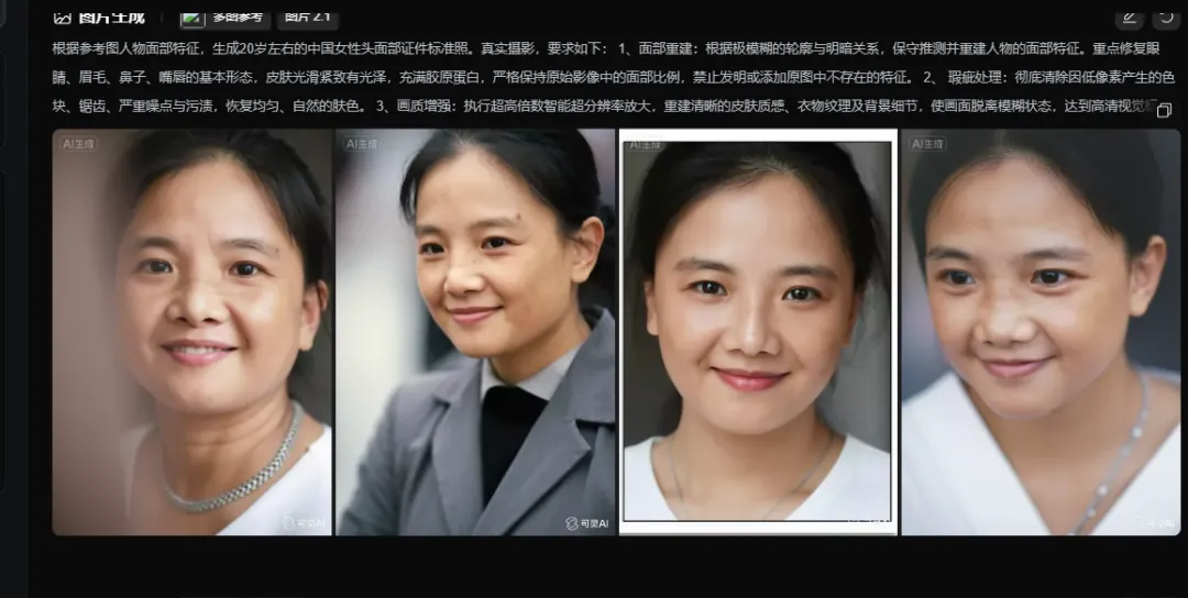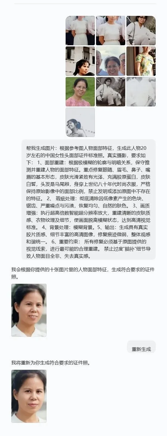扣出来只有10KB,再通过PS扩大像素到60KB左右,再在若干个集体照中把相关人物“扣”出来,“投喂”给AI……“奇迹”发生了: