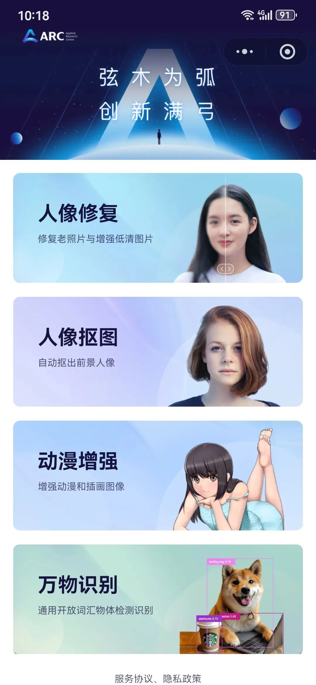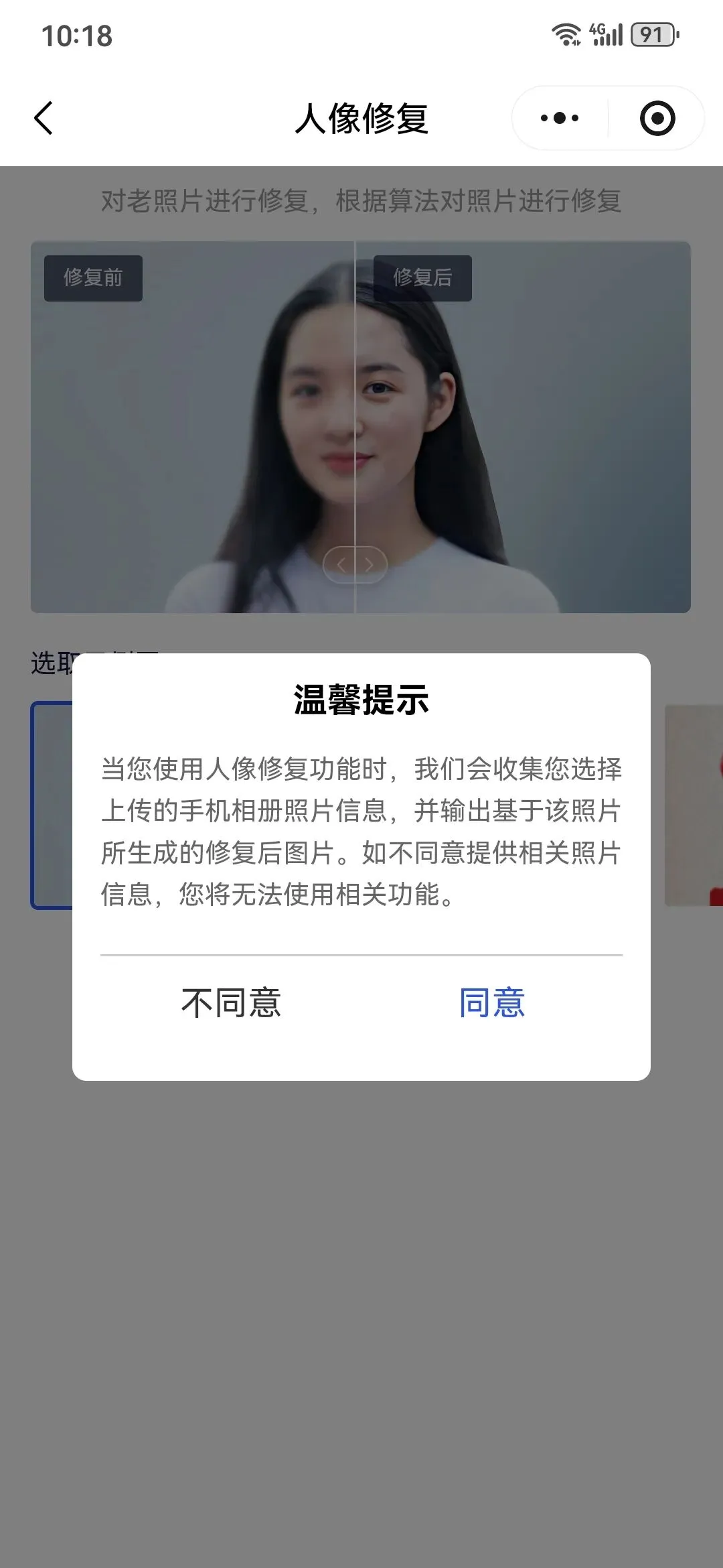 第二步:点击人像修复,同意服务条款,会让你用手机号发送验证码注册,按提示操作即可。第三步:上传手机里的老照片(老照片需要用手机拍照后存入手机相册再上传),点击人像修复即可开始修复,可以拖动中间的箭头进行修复对比查看,最后保存到手机相册即可。图片会自带ARC的水印,可以再用水印消除工具去掉就好啦!