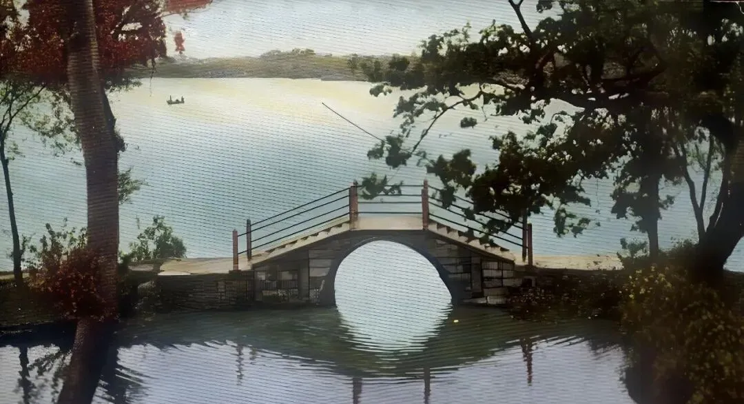 这座圆孔的石拱小桥安安静静,桥身只两三步宽,扶手用细栏杆连起,水里倒出一个规整的月亮,树影把月亮切成碎片,渔舟在远处撒着线,话不多,全靠风景自己说话。