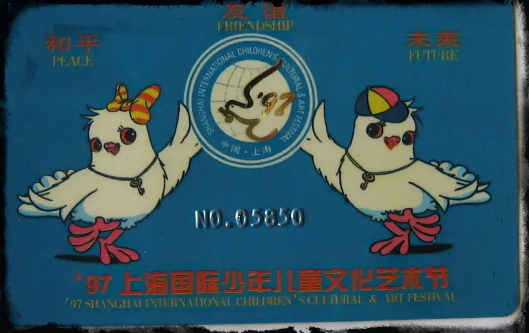 1997年上海国际少年儿童文化艺术节,卡背面显示当年这套卡发行了10000套。从当年到次年8月底,可以六折购买上海野生动物园门票。还可以在次年12月前享受美国梦幻乐园门票九折优惠。