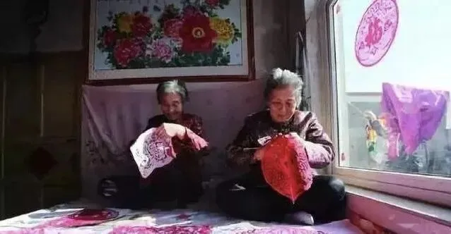 姑娘们自己剪窗花