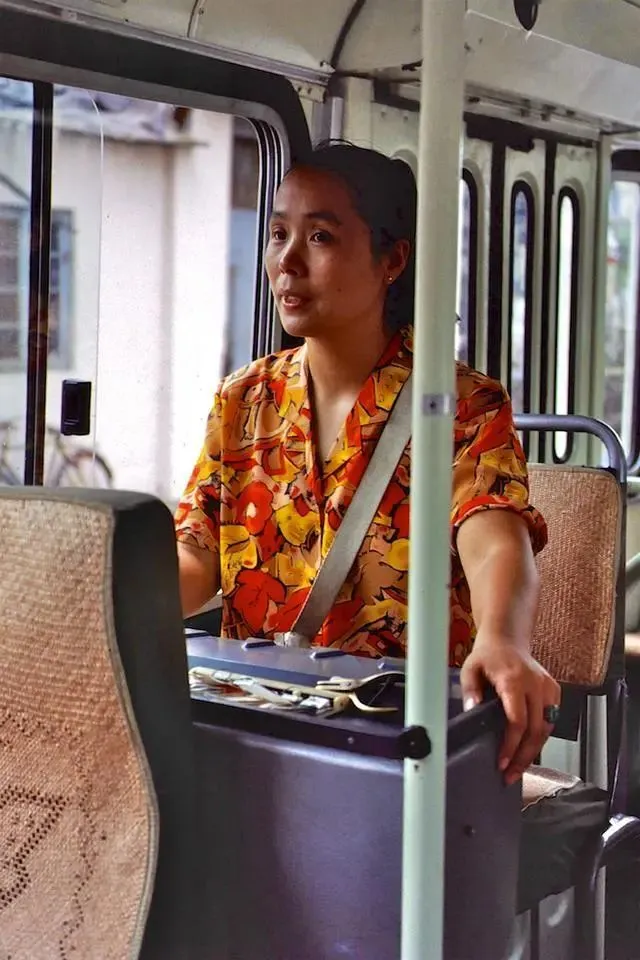 图为公交车上的女售票员,在上个世纪八九十年代,公交车售票员是一份让人羡慕的职业。售票员的主要工作是售票、报站,一般还是比较轻松的,但是要是遇到高峰期,乘客多的时候就痛苦了,他们要在拥挤的车厢里穿梭售票。
