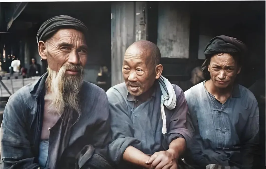 这个缠在头上的黑布叫帕头,汗多的日子一拧水能顺着指缝滴下来,左边的老伯胡子分两绺,胡根黄里透白,右边那位眼睛眯成一条缝,像是被太阳晃得不耐烦,中间人胳膊肘搁膝上往前探,桌面上看不见却能想象到,热腾腾的盖碗茶刚揭盖儿,蒸汽往脸上扑,嘴里必定念叨一句烫嘴,小心着点。