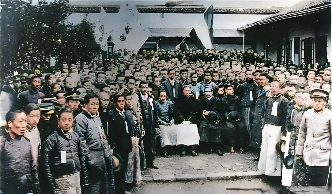 这个挤满人的院子里,前排摆着两张长条桌,桌上的卷轴是宣言的底稿,纸边被手指磨得起毛,左右两侧的袖标白底黑字,像一排排小旗子随人走,年轻人眼睛亮亮的,老先生端坐不动,只有呼吸把胸口轻轻托起,那时候开会没有扩音器,靠嗓子顶,喊一句“请坐”,人群像潮水一样往回落。