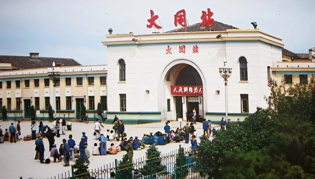 这个白墙绿根的门楼叫大同站,拱券一开气派得很,红字“人民铁路为人民”顶在门楣上,站前广场人席地而坐等进站,谁家大包小包全捆着草绳,父亲总爱叮嘱票夹好,别挤丢了。
