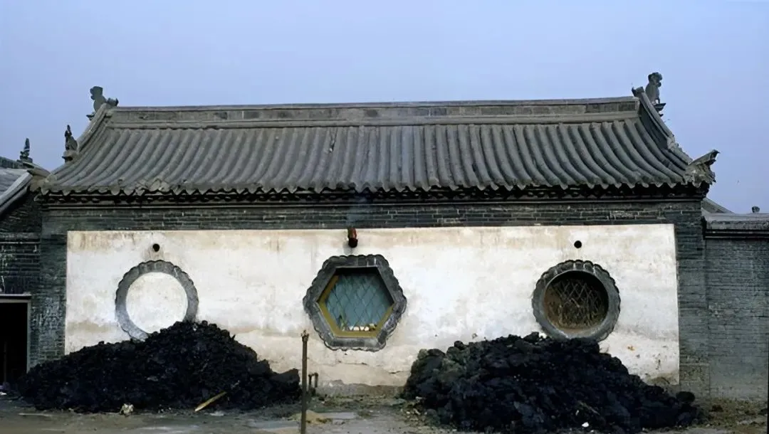 墙根下两座黑黢黢的叫煤堆,圆窗八角窗像俩眼睛看人,冬天把煤球垛成小山,手背一抹就黑,洗半天也洗不干净。