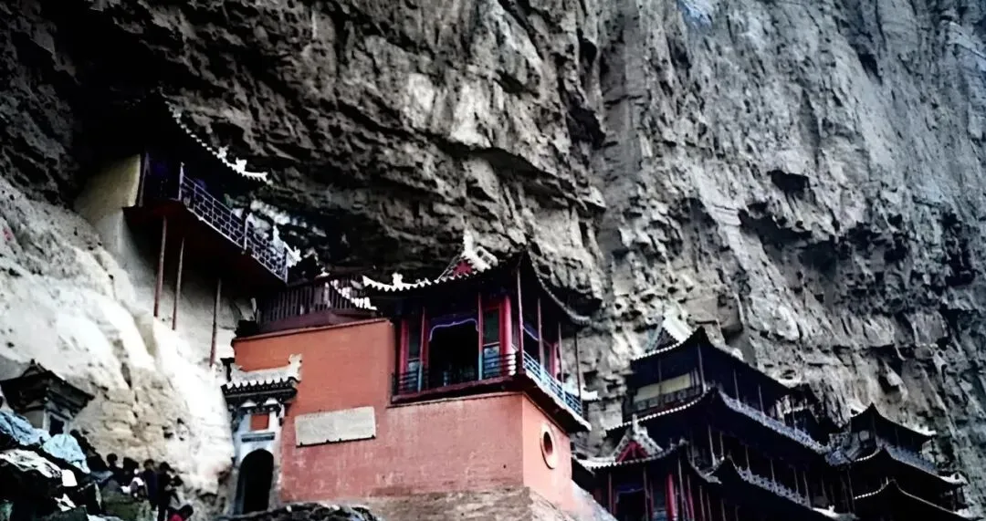 这串挂在崖壁上的叫悬空寺,红柱黑瓦一层摞一层,木栈道伸出去就是风口,往下一瞟腿有点发软,导游笑着说胆小的抓紧栏杆。