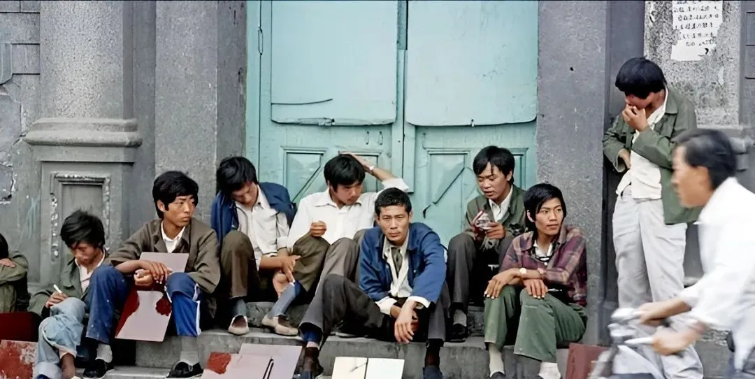 这群靠台阶坐着的男孩在工人俱乐部门口,画板夹在腋下,谁手里还捏着半截铅笔,电影没开场就先在门口侃大山,等到红灯笼一亮,呼啦啦往里冲。